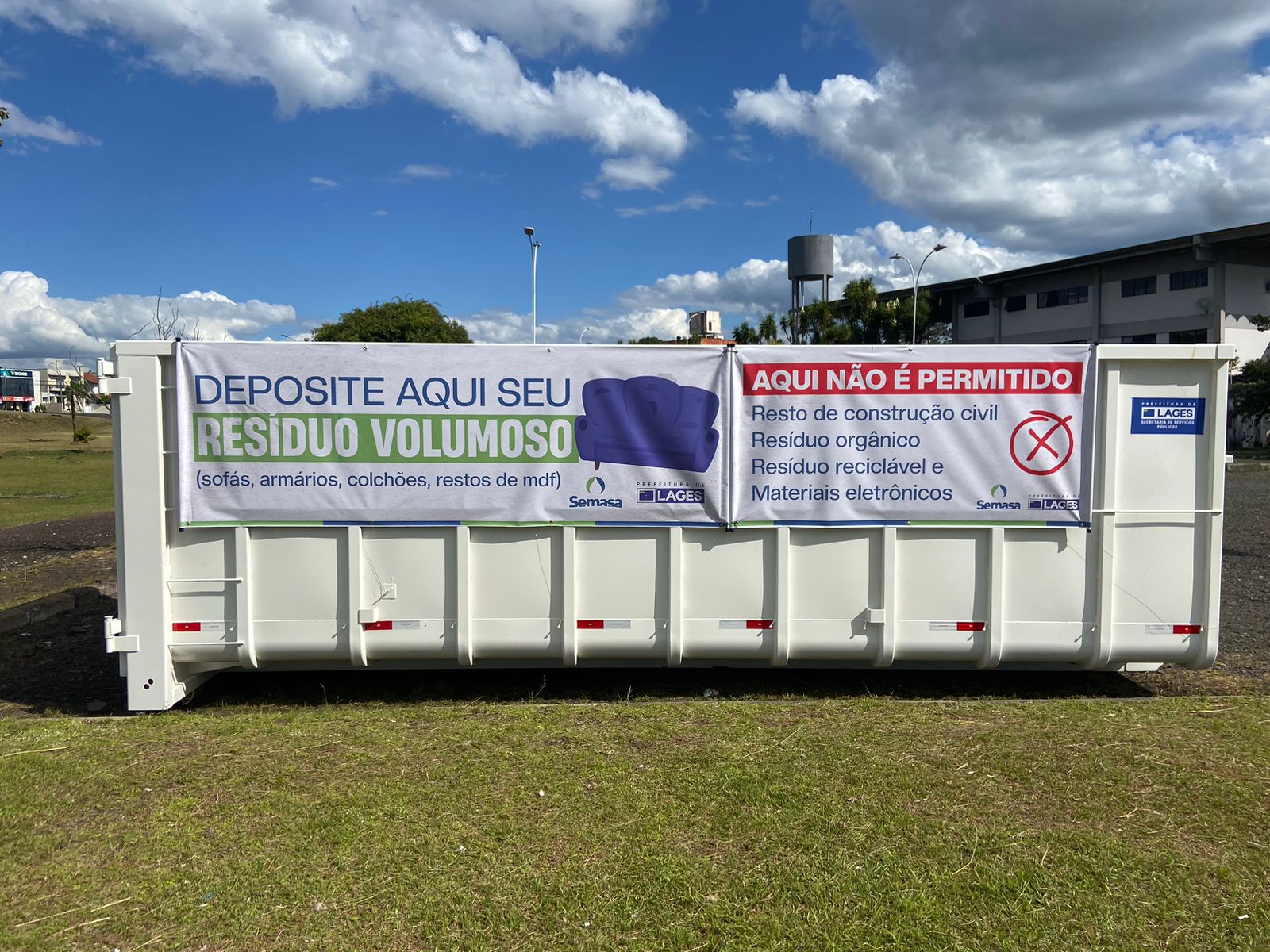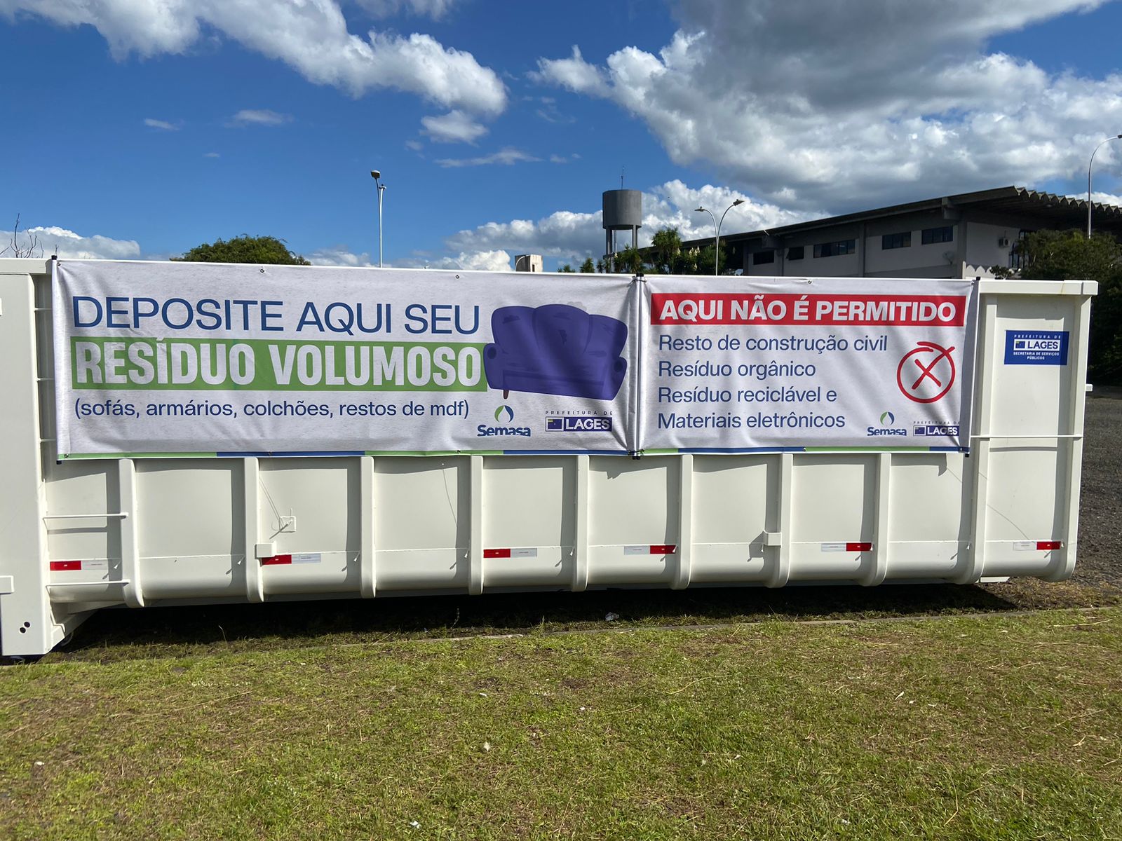 A Secretaria Municipal de Águas e Saneamento (Semasa) passou a disponibilizar um ponto específico para o descarte de resíduos volumosos em Lages. O local já está em funcionamento no estacionamento do Terminal Rodoviário Dom Honorato Piazera - avenida Dom Pedro II, bairro Universitário - com acesso facilitado para a população, que pode levar os materiais por meios próprios e fazer o descarte diretamente no equipamento instalado no ambiente.