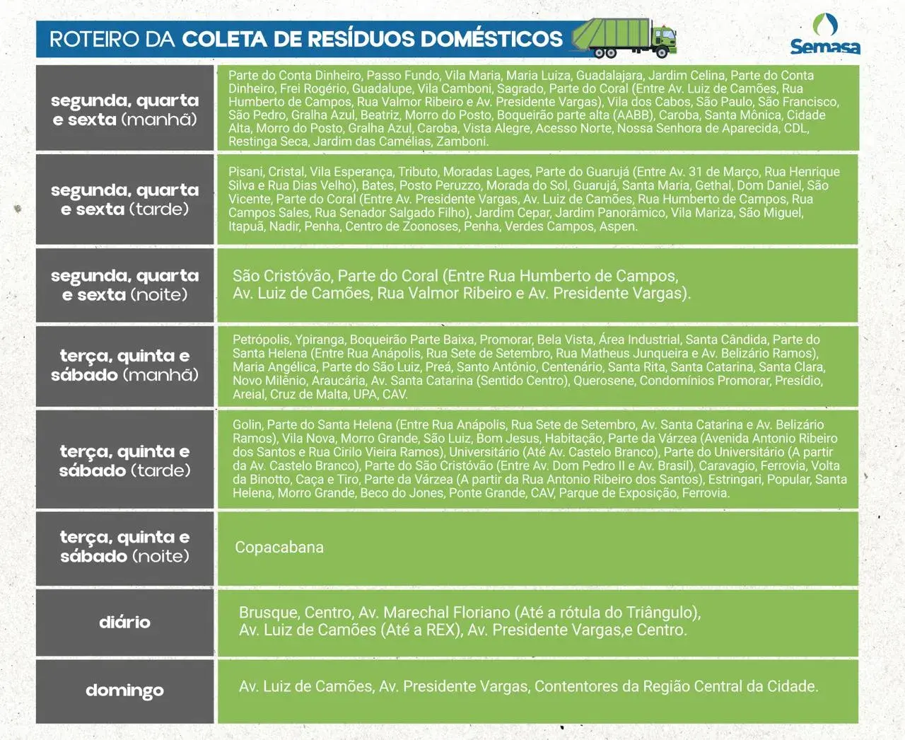 ITINERÁRIO - Coleta de Resíduos Domésticos